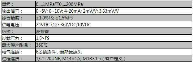 额定量程:0….1MPa至0….200MPa